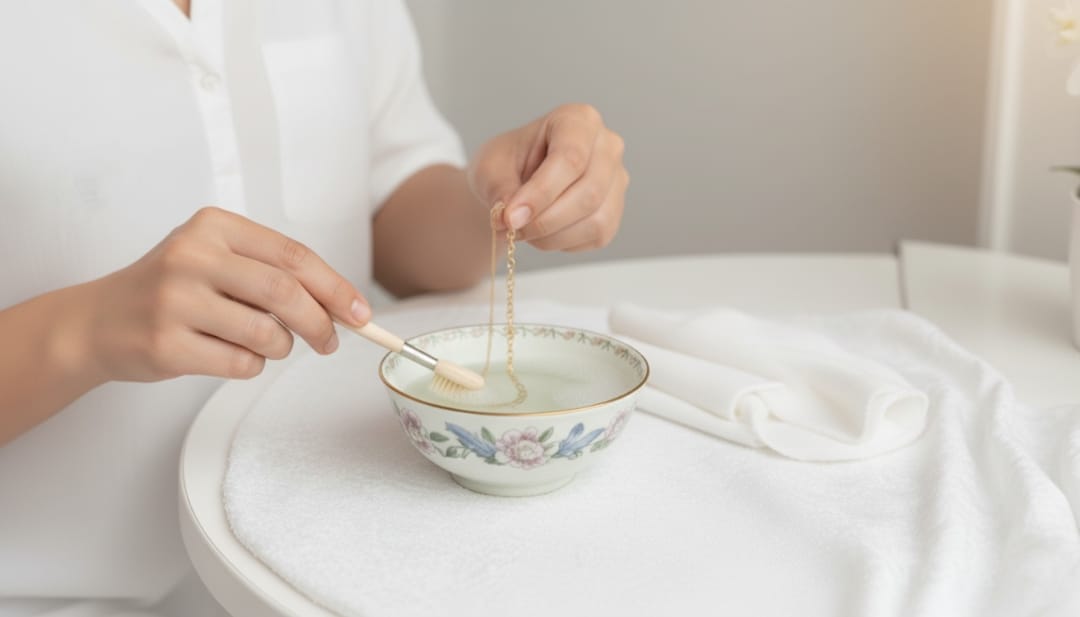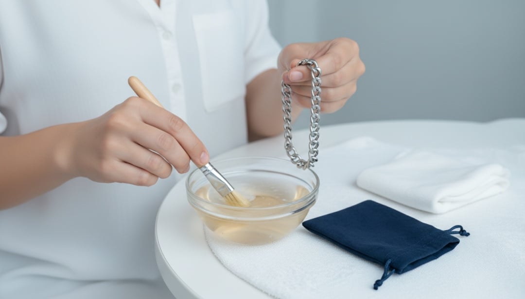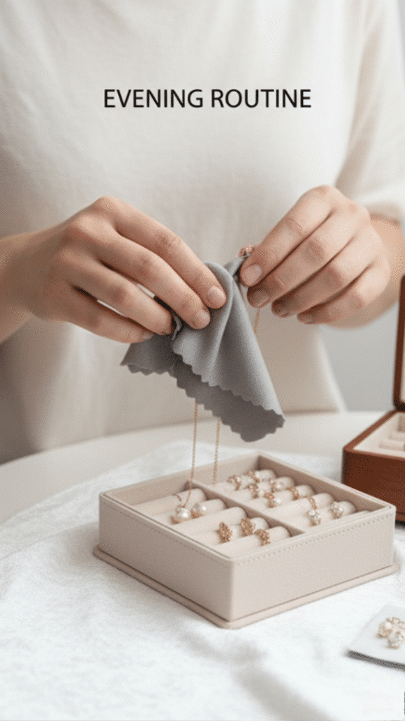 The 30-Second Evening Clean: For daily-wear pieces, this quick routine prevents buildup: