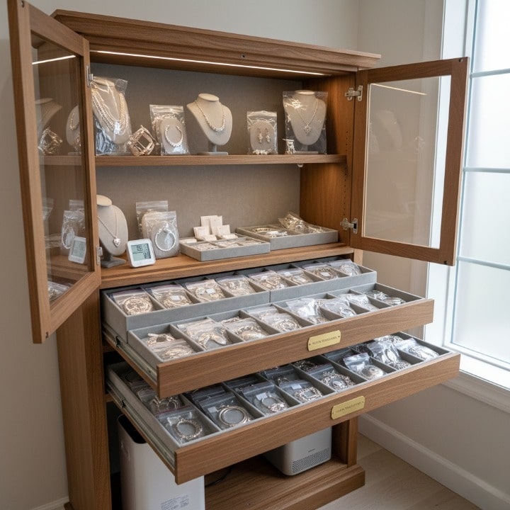 - Clean storage containers: Dust and wipe down jewelry boxes