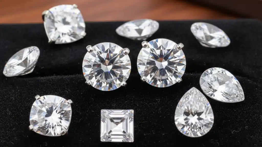 12. Cubic Zirconia Studs Beautiful diamond alternatives that sparkle brilliantly without the premium price. Available in various sizes and cuts.