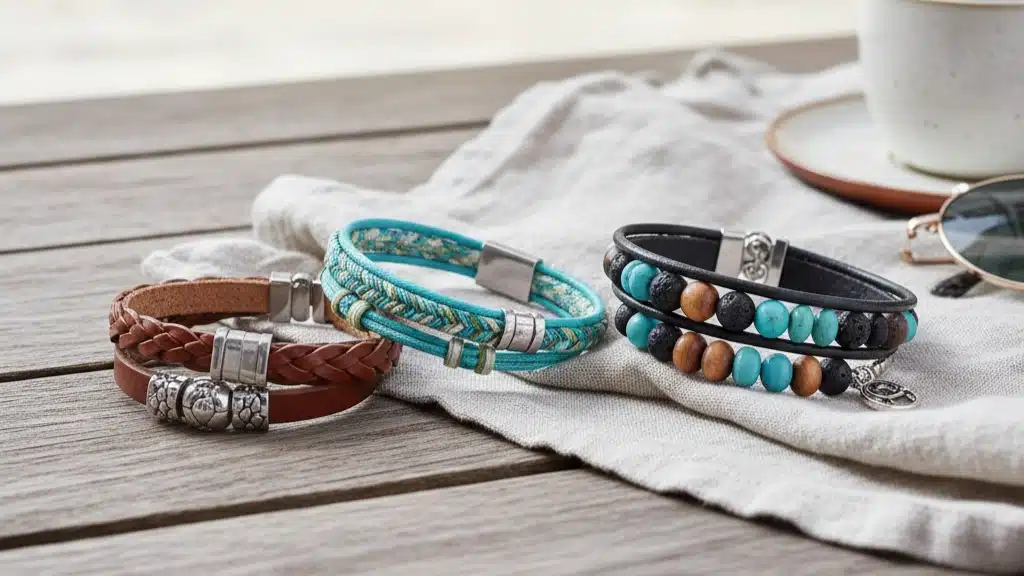 13. Wrap Bracelets Trendy and comfortable, wrap bracelets work for casual and semi-formal occasions. Choose leather, cord, or beaded styles.
