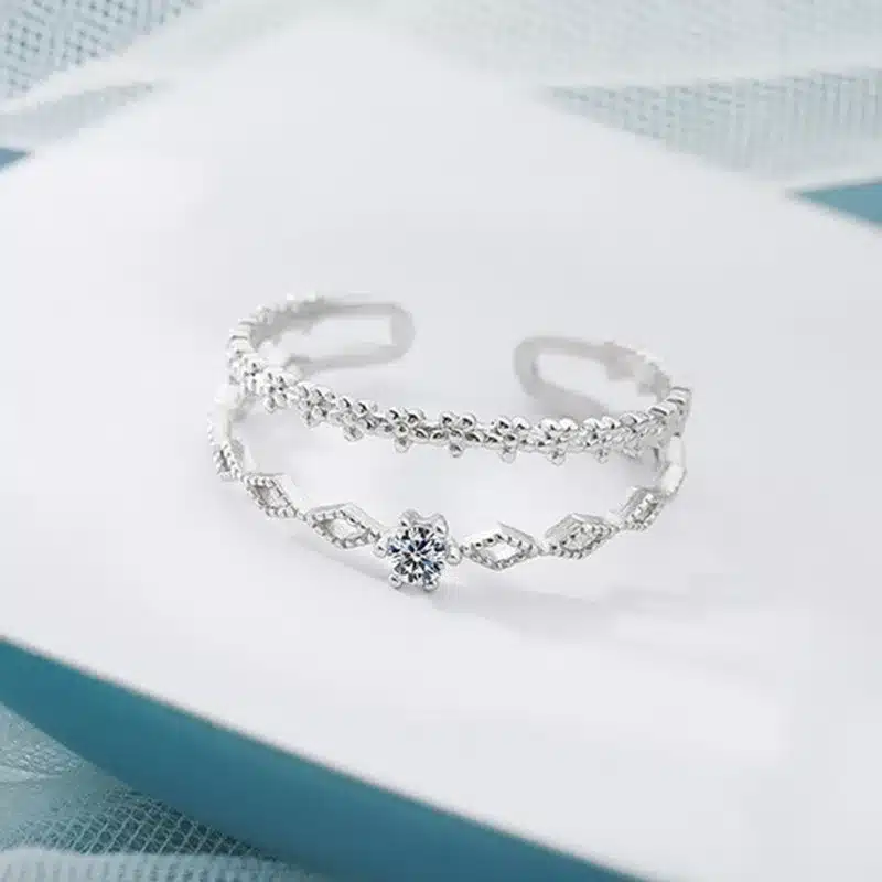This adjustable lace flower CZ ring perfectly blends feminine elegance with practicality. Its timeless design and comfortable fit make it a cherished addition to any jewelry collection and a meaningful gift option.