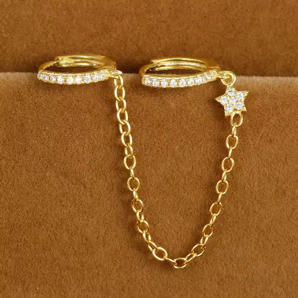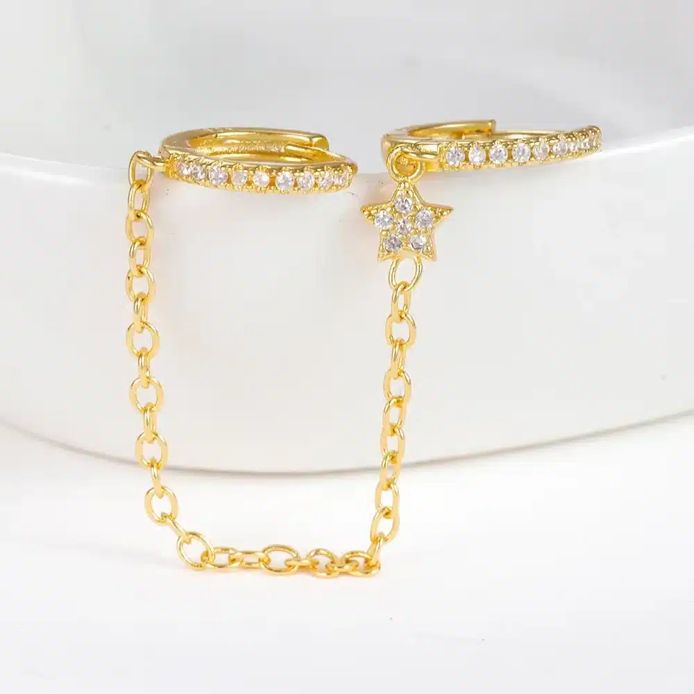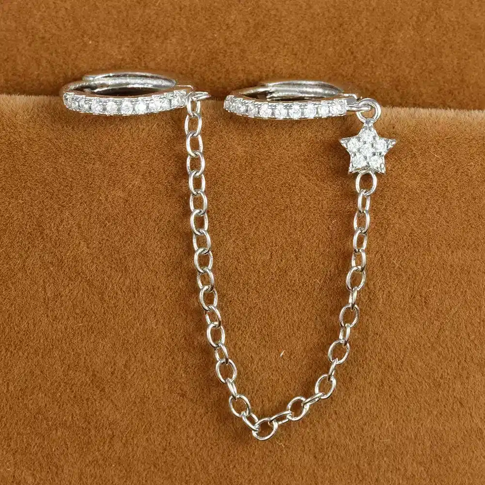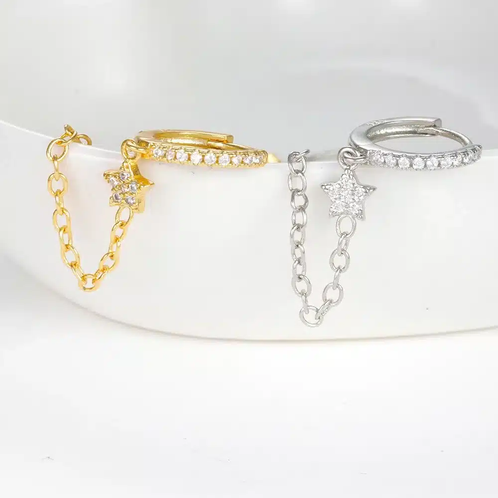 Featuring delicate stainless steel chains adorned with charming star-shaped accents, these earrings bring playful elegance to any look. Whether styled for a casual day out or paired with a glamorous evening dress, they adapt effortlessly. Lightweight and hypoallergenic, they ensure all-day comfort without sacrificing shine. Perfect for lobe piercings and cartilage placements like the tragus or helix, they’re as versatile as they are beautiful.