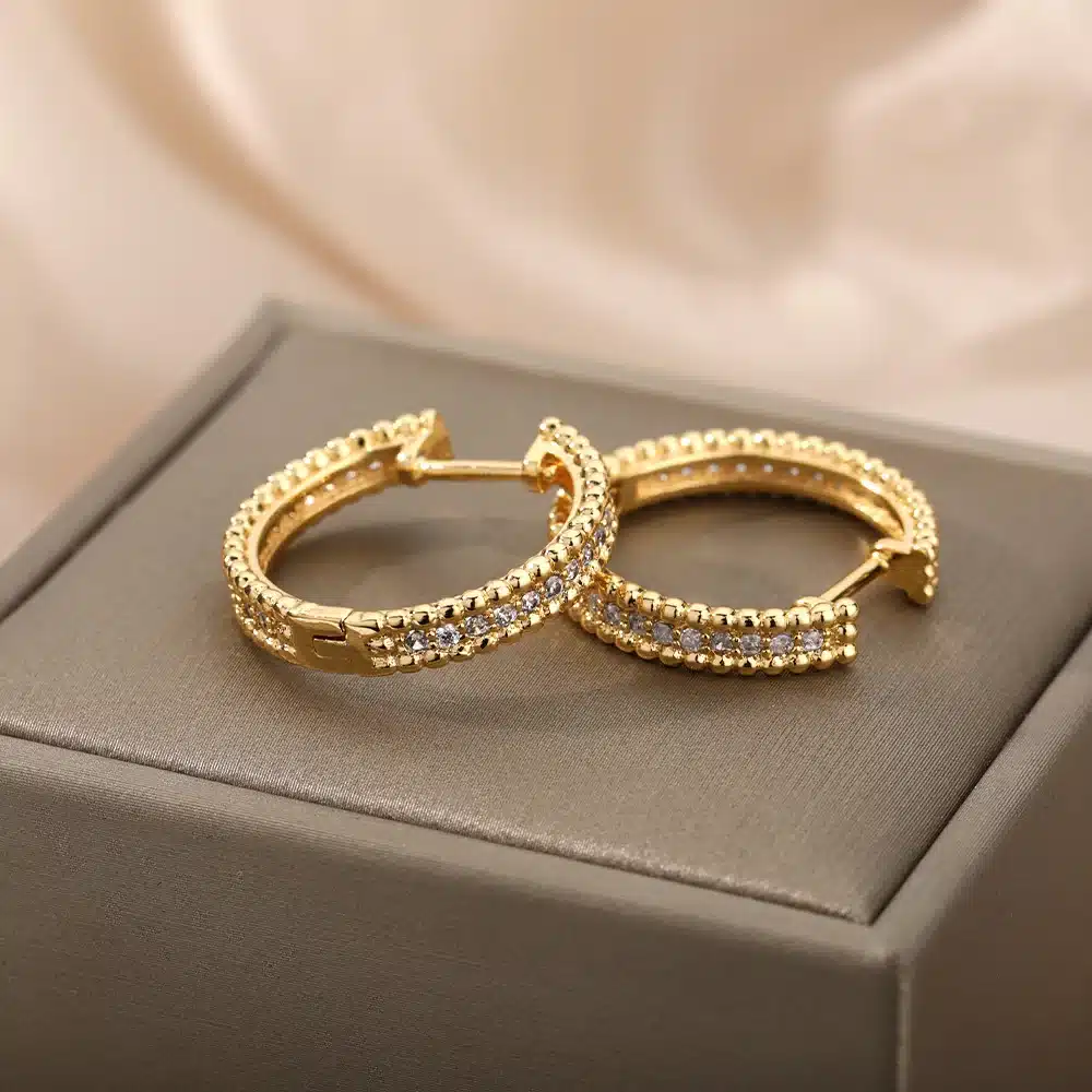 ✨ Round Zircon Crystal Hoop Earrings – Dazzling Elegance
