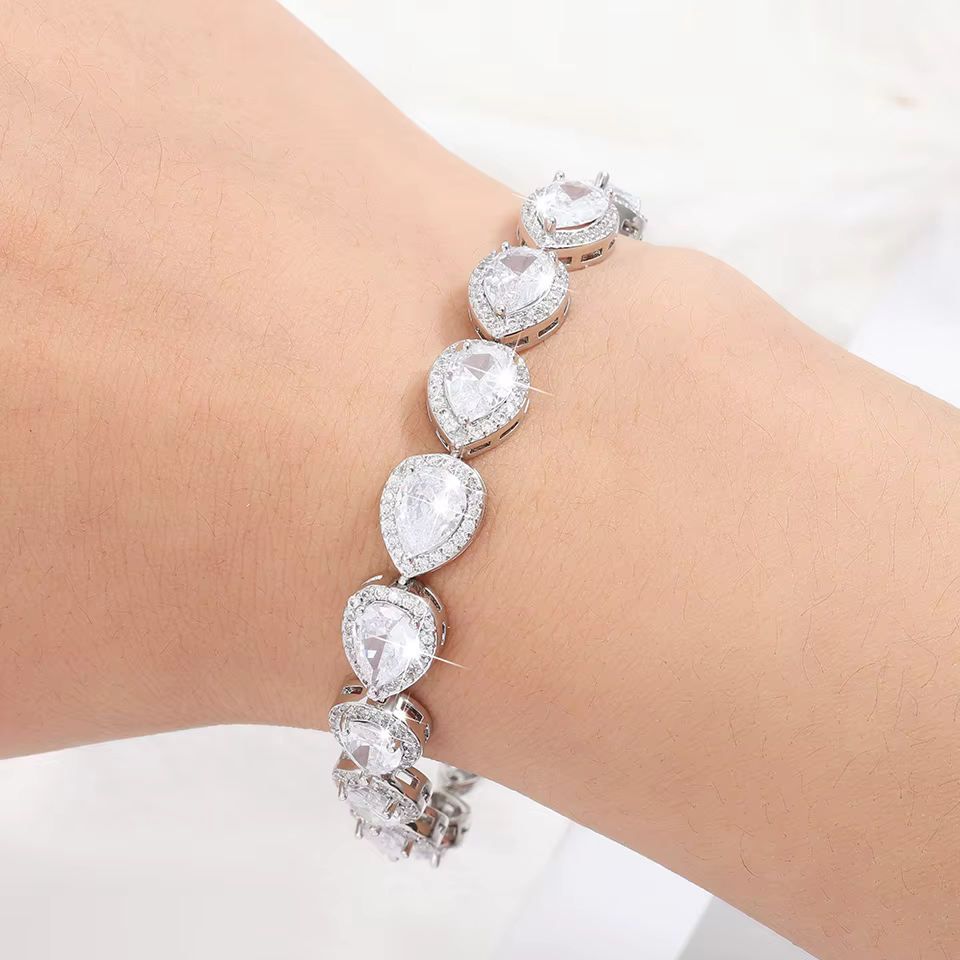 💎 Teardrop CZ Wedding Bracelet – Timeless Glamour